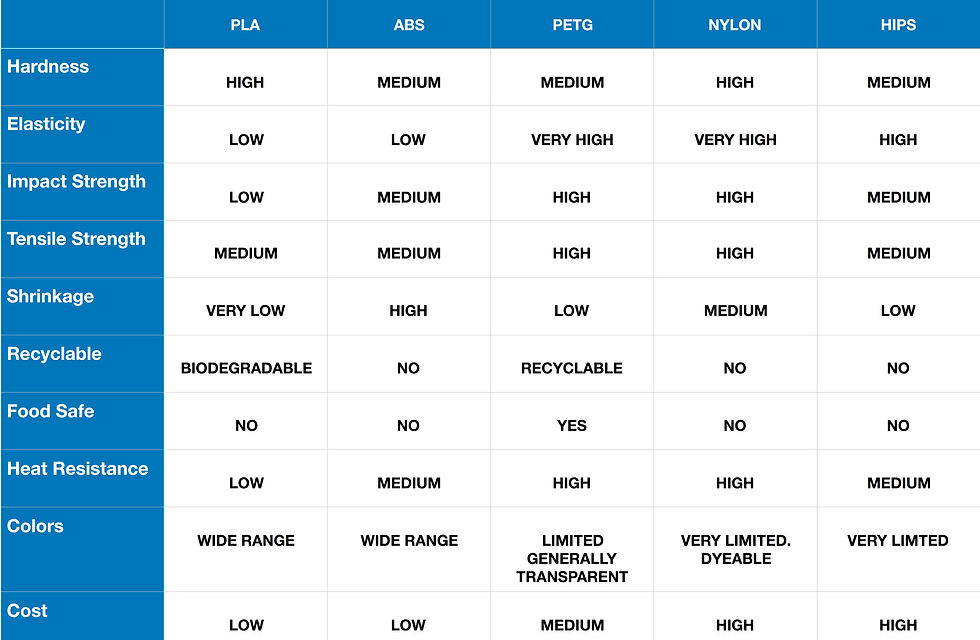 Durable, Hard, Semi Heat Resistant. Great for prints that require some strength and endurance while easily sandable and painted.